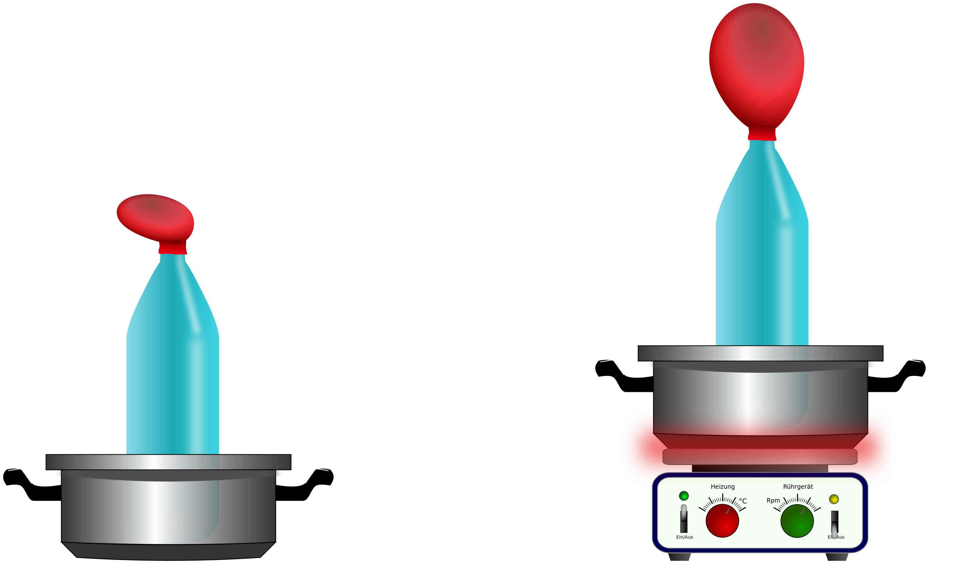 This features two pots with blue lids, each containing a red balloon. These pots are placed on top of a small stove, which is turned on. The stove has an oven function and a timer function, allowing for precise cooking control. The scene appears to be a playful kitchen setup, possibly designed for children or as part of a creative art project.