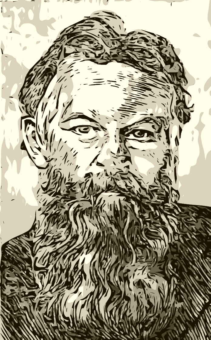 This is a black and white drawing of an older man with a beard. He has a stern look on his face, giving the impression that he might not be happy or content. The drawing appears to have been done in pencil, which adds to its artistic quality. The man's facial features are well-defined, and his eyes are open wide, making him appear focused and attentive. Overall, it is a captivating portrait of an older gentleman with a strong presence.