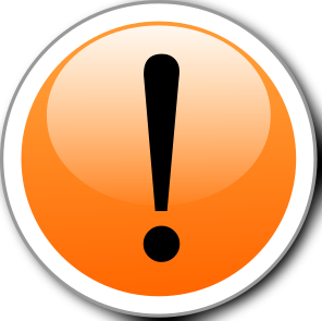 This features a large, round orange button with a black outline and a bold black exclamation point in the center. This eye-catching design is likely meant to draw attention to its message or purpose. The contrast between the orange background and the black accents creates a striking visual effect that makes it stand out from other buttons or icons.