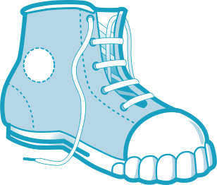 This features a blue shoe with white laces, which is seen from the side. It has a dark blue outline and appears to be black and white in color. The shoe's design gives it an old-fashioned look, making it stand out as a unique piece of footwear.