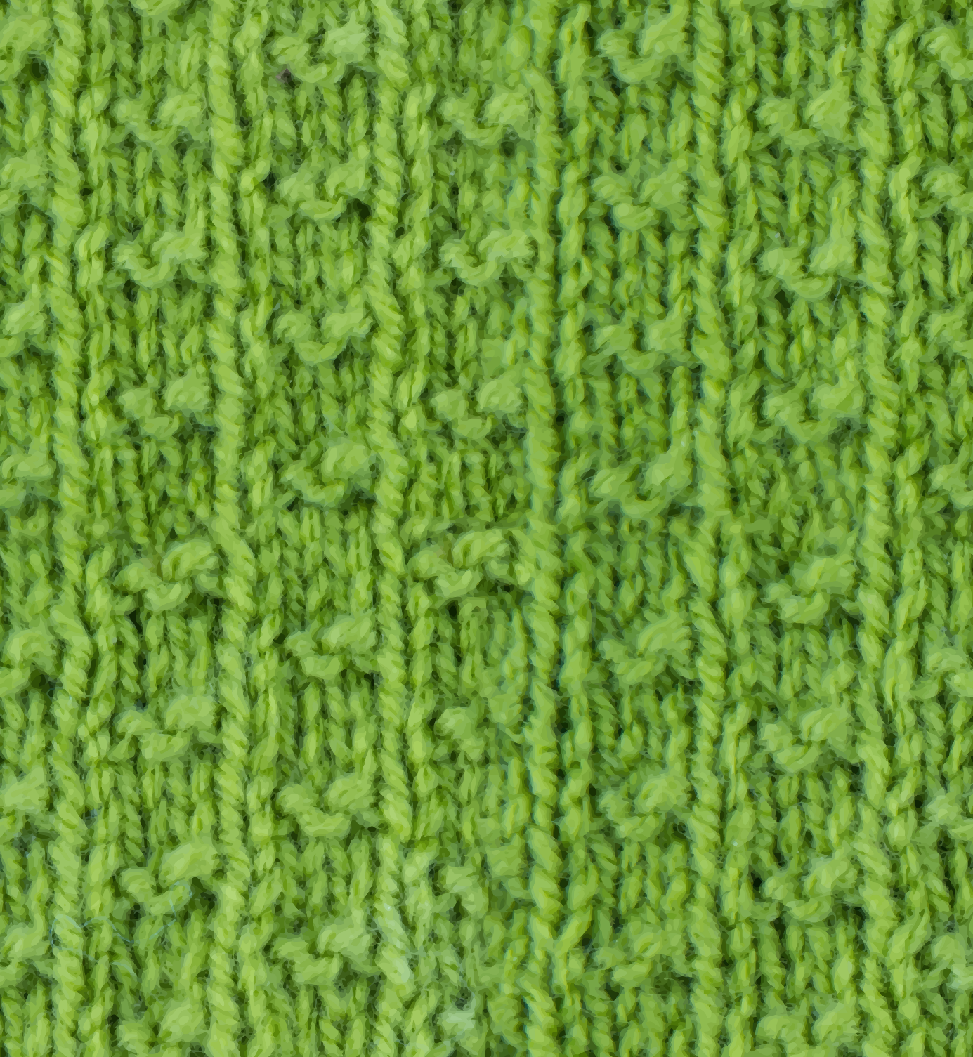 This features a close-up of a green, knitted fabric with a patterned texture. The color is predominantly yellow and the fabric appears to be made from yarn. The knitting creates an interesting visual effect that adds depth and character to the material. This type of fabric could be used for various purposes such as clothing or home decor items like blankets, rugs, or wall hangings.