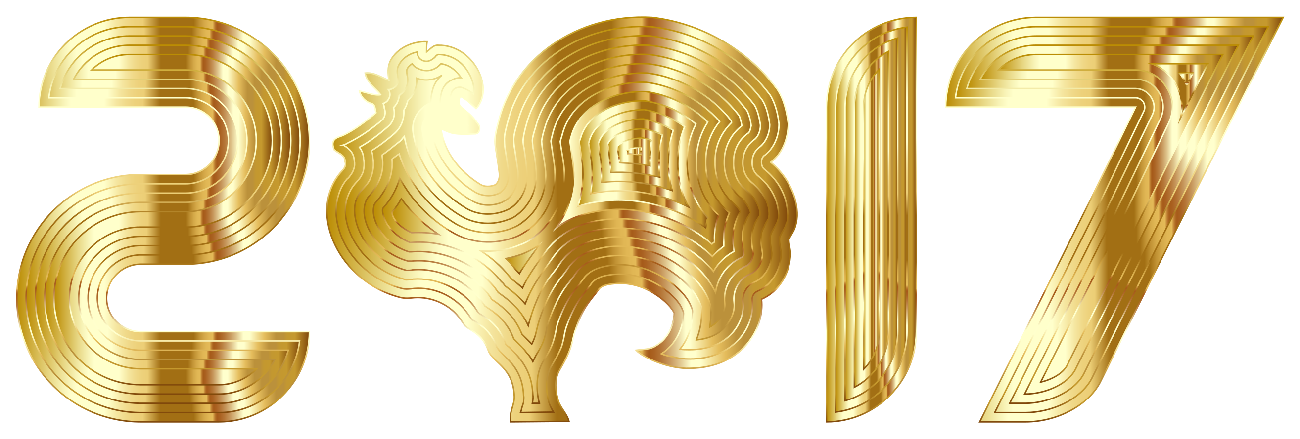 This features a large golden number 2017, with the numbers 17 and 19 visible as well. The number is surrounded by gold foil, giving it an elegant appearance. In addition to the main number, there are two smaller golden roosters positioned above and below the number, adding a decorative touch to the scene. These roosters appear to be part of a larger design or pattern that complements the main number. The overall effect is a visually appealing display of gold foil and intricate patterns.