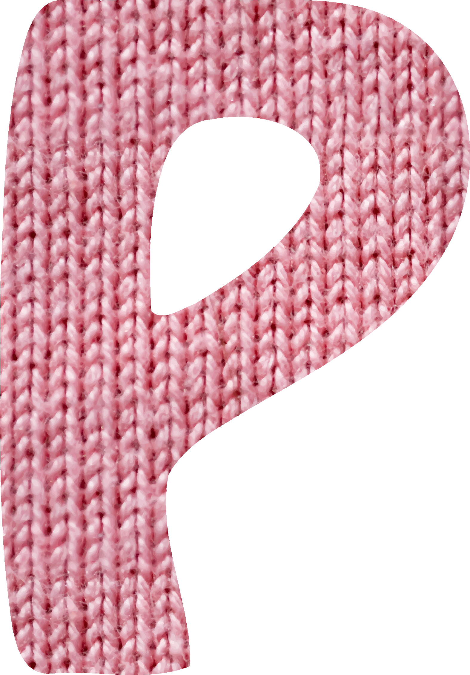 This features a pink knitted or crocheted letter P, which is the main focus of the picture. The letter appears to be made from yarn and has a unique texture that makes it stand out. In addition to the letter P, there are other letters in the background, but they are not as prominent as the main subject. Overall, the image showcases an interesting craft project with a creative twist on traditional letter shapes.