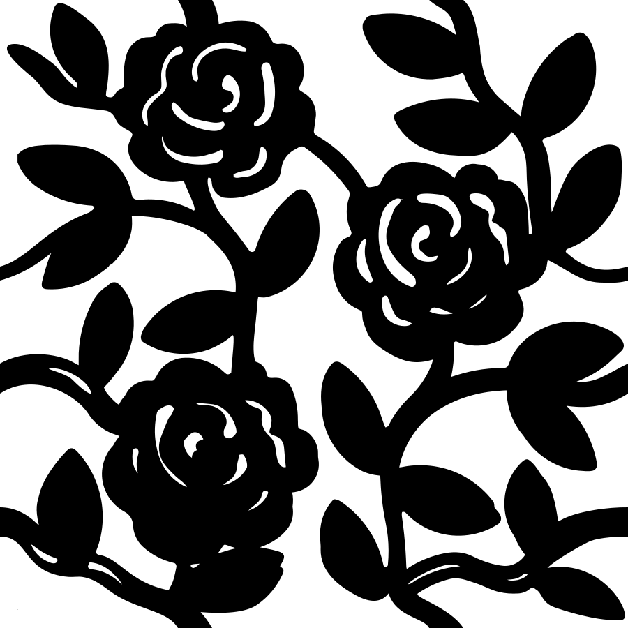 This features a pattern of three black roses with white outlines, each one placed on top of a long stem. These roses are arranged in such a way that they appear to be growing from the stems, creating an elegant and visually appealing design. The contrast between the dark color of the roses and the white outline adds depth and interest to the pattern, making it stand out as a unique and eye-catching decorative element.