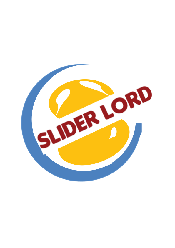 This features a logo for the slider lord, which is a company that specializes in making delicious sliders. The logo consists of a yellow circle with a red border and white lettering, displaying the name "slider lord." The design gives off an appealing and appetizing vibe, likely attracting customers to try their sliders.