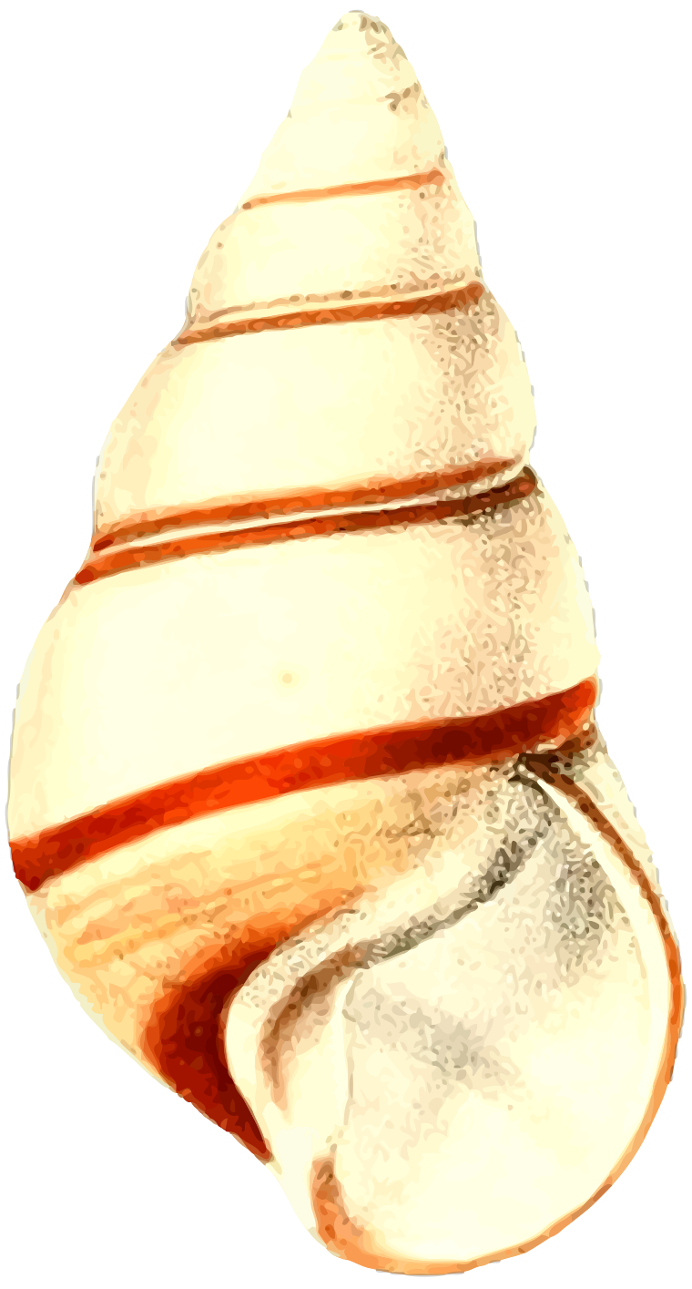 This features a close-up of an orange and white shell, possibly a conch or a snail. The shell is prominently displayed in the foreground with a white background behind it. This artistic representation of a shell could be from a drawing in "Conchologia iconica," which was created by Lovell Augustus Reeve in 1843. The detailed and intricate design of the shell showcases its beauty, making it an interesting focal point for viewers.