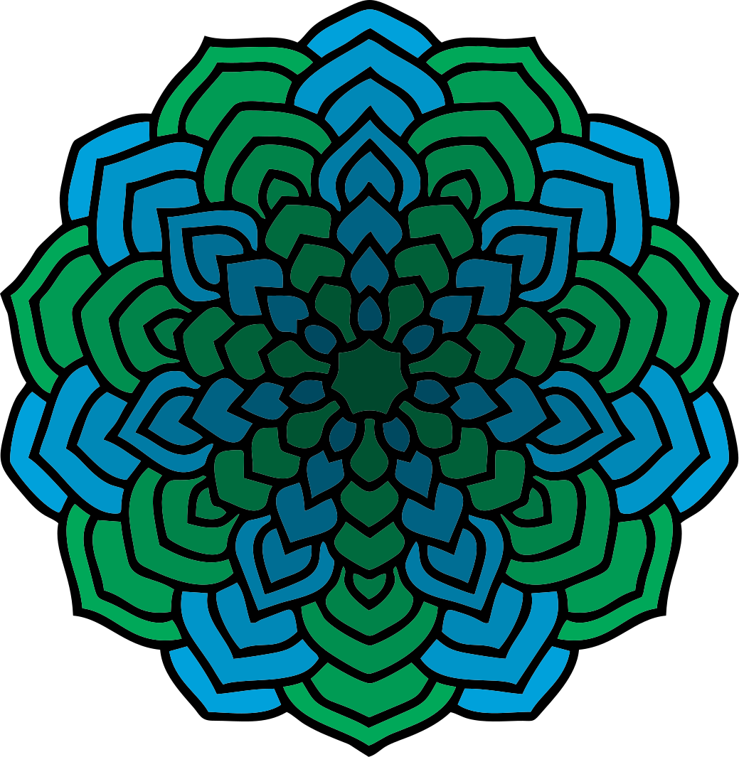 This features a large, intricate blue and green flower with an eye-catching design. The flower is composed of many petals that are arranged in a circular pattern, creating a visually appealing centerpiece. The vibrant colors of the flower make it stand out against its background, drawing attention to its unique features. This artistic piece could be used as a decorative element or even as a part of an art project, showcasing the beauty and creativity that can be found in nature.