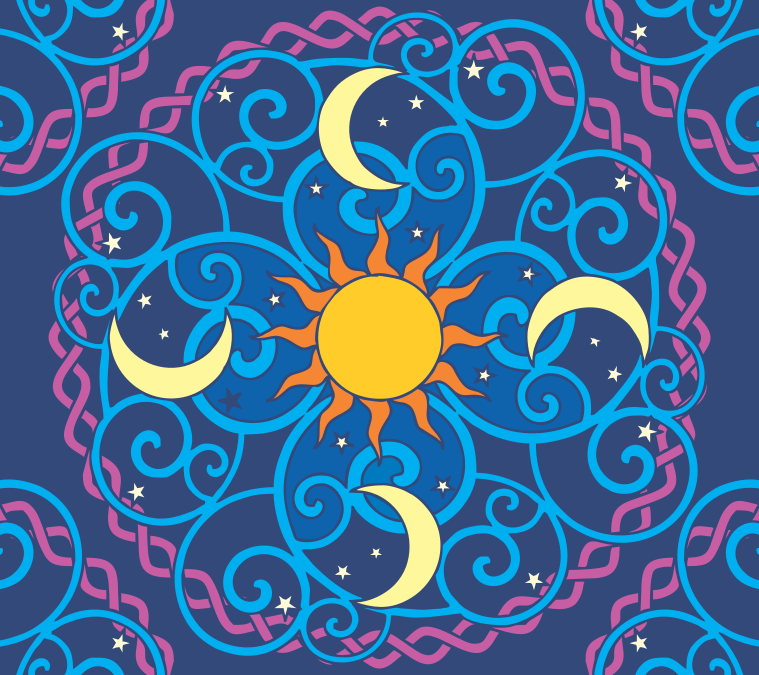 Tags: decorative, design & art, mandala, moon, star, sun, symmetry