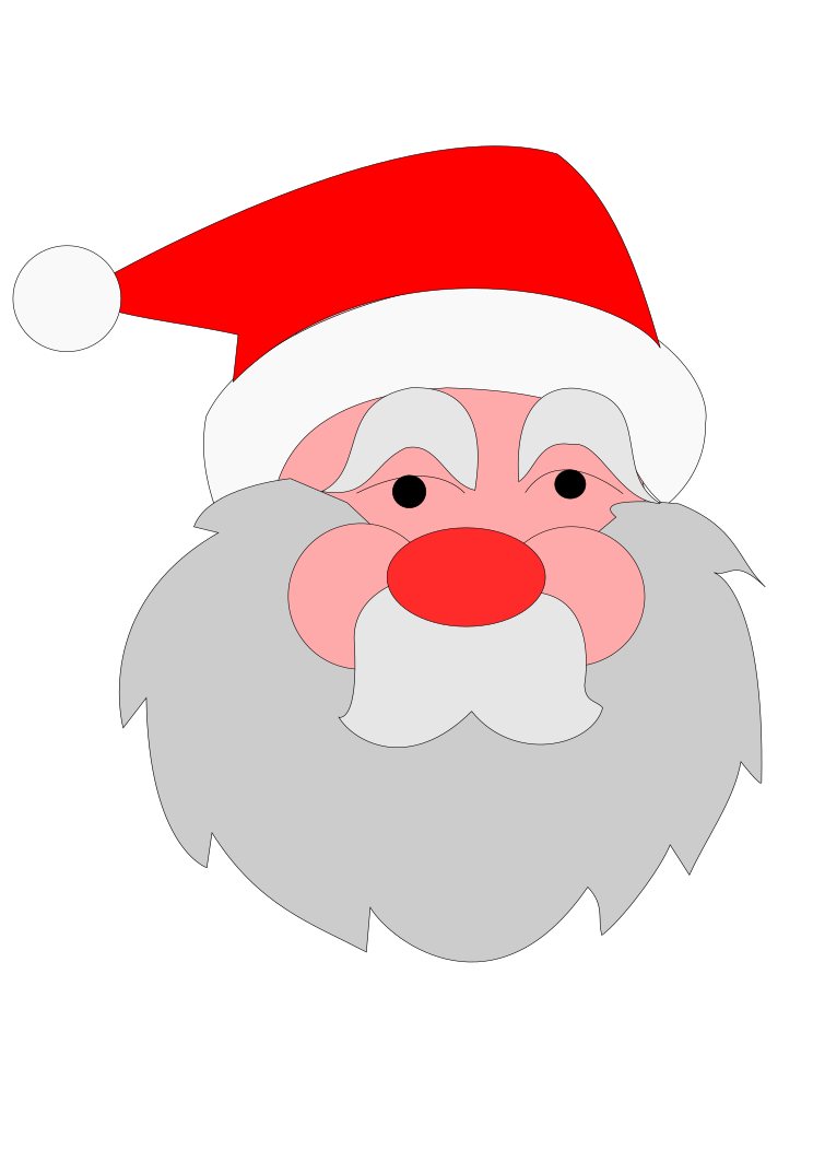 This features a colorful drawing of Santa Claus, with only his head prominently displayed. He is wearing a red hat and has a red nose, which are characteristic elements of the holiday figure. His beard is gray, adding to the overall appearance of an older man. The drawing itself appears to be a cartoon or comic-style representation of Santa Claus, making it suitable for various festive occasions or holiday-themed events.