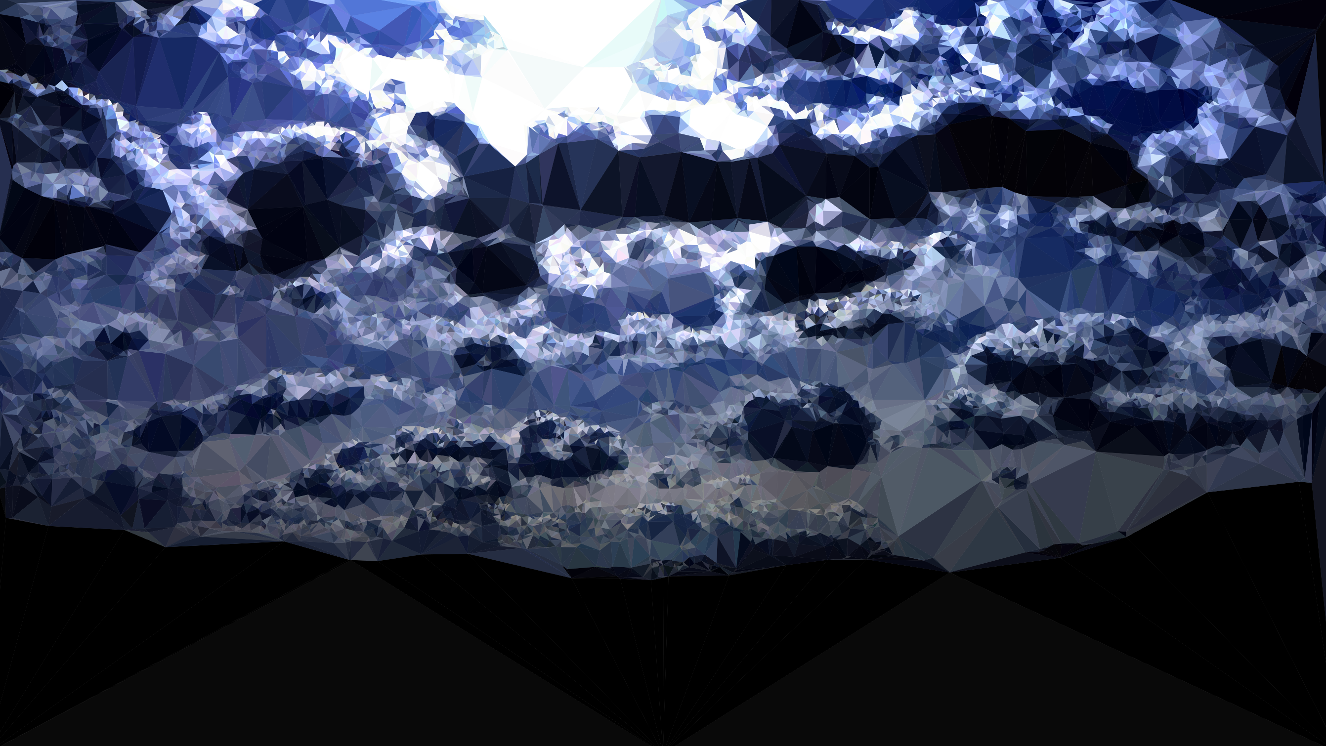 This features a cloudy sky with a blue hue, filled with numerous clouds. The sun is partially obscured by the clouds, making it difficult to see clearly. The ground appears black in color, contrasting with the vibrant colors of the sky and clouds. This scene creates an atmospheric and dramatic backdrop for any photo or painting that captures this moment.