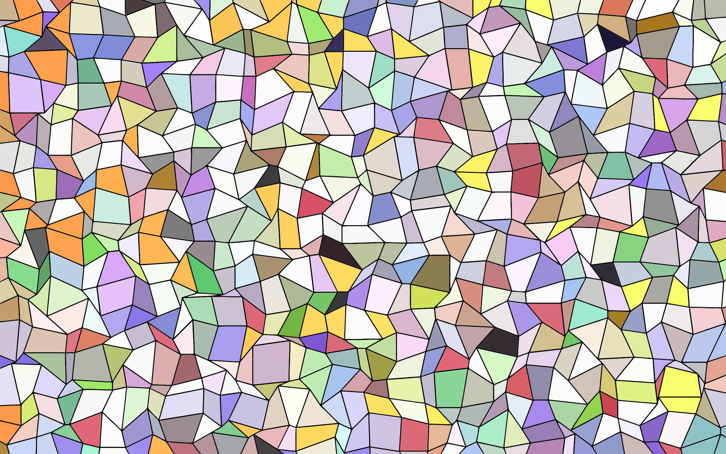 This is a colorful mosaic of various shapes and colors. It features a mix of different shades, including purple, yellow, red, green, blue, orange, pink, and brown. These colors are arranged in such a way that they create an intricate pattern throughout the entire picture. The mosaic is composed of numerous small squares, each containing a unique color combination. This artistic display creates a visually appealing and dynamic scene that captures the viewer's attention.