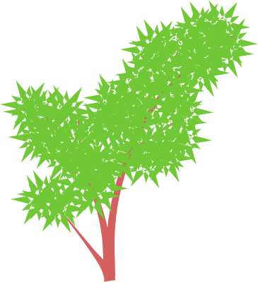 This features a tree with green leaves and branches. It is a close-up of the tree, showcasing its intricate details. The tree has a red trunk, which stands out against the background. The leaves are scattered throughout the tree, creating a lush and vibrant appearance. This artistic representation of the tree highlights its beauty and natural charm.