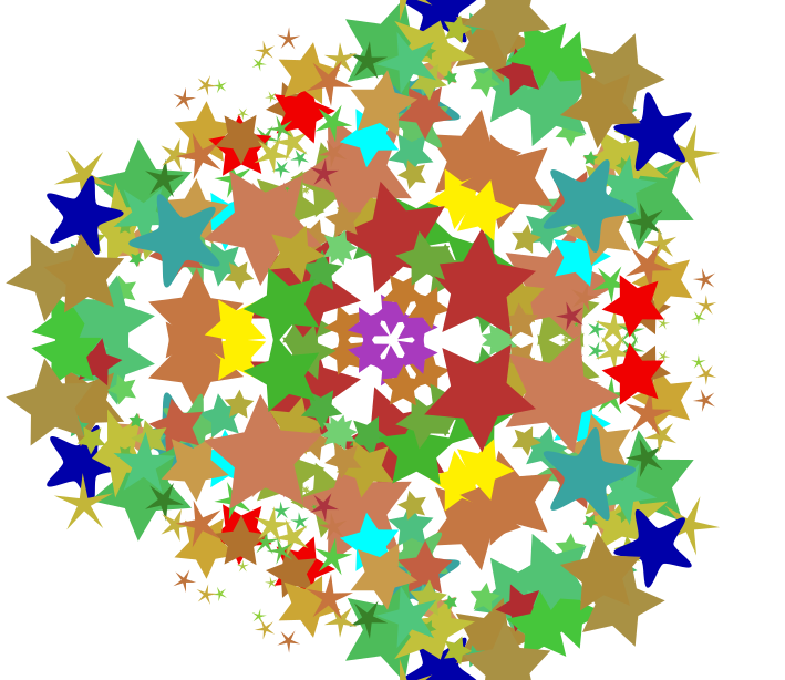 This features a colorful and intricate design made up of various star shapes. These stars are arranged in a circular pattern, creating an eye-catching and vibrant display. The stars come in different colors, including blue, yellow, red, green, purple, orange, and gold. They are scattered throughout the entire image, with some stars being larger than others, adding depth and dimension to the overall design. This visually appealing pattern can be used as a template for creating fake kaleidoscope images or simply as an artistic display on its own.