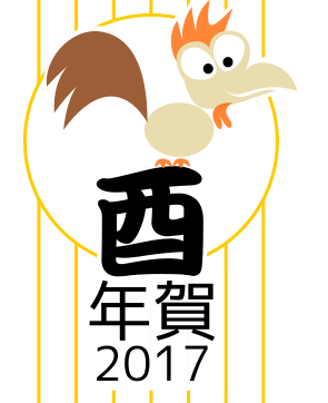 This features a rooster, which is the symbol for 2017 in the Chinese zodiac. It appears to be an advertisement or promotional material, as it has Japanese writing on it. The rooster is positioned at the center of the image and takes up most of the frame.