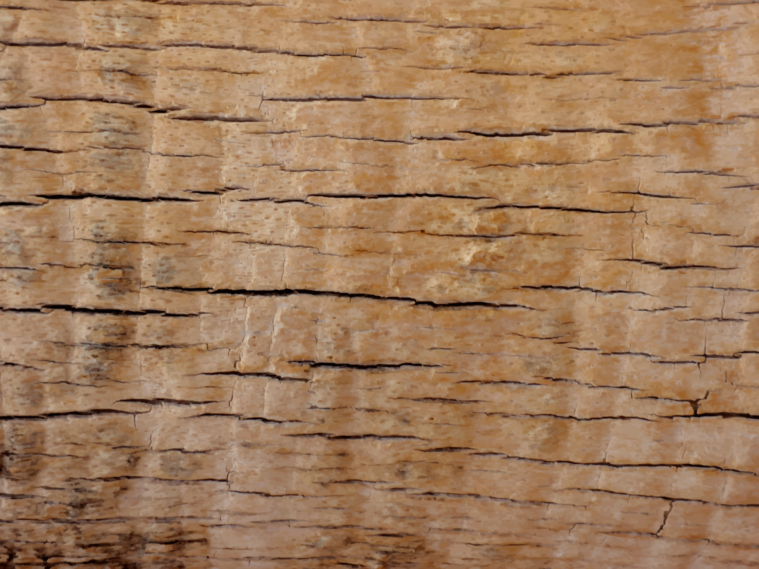 This features a close-up of an old, weathered piece of wood. The wood appears to be made from a tree trunk and has a rough texture with visible bark. There are several cracks in the surface of the wood, giving it a worn and aged appearance. The overall look of the wood suggests that it has been exposed to various elements over time, contributing to its weathered state.