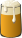 This features a close-up of a glass jar with a yellow liquid inside. The jar is filled to the brim, and it appears to be a container for honey or some other type of sweet substance. The jar's shape and size give it an old-fashioned appearance, adding character to the image.
