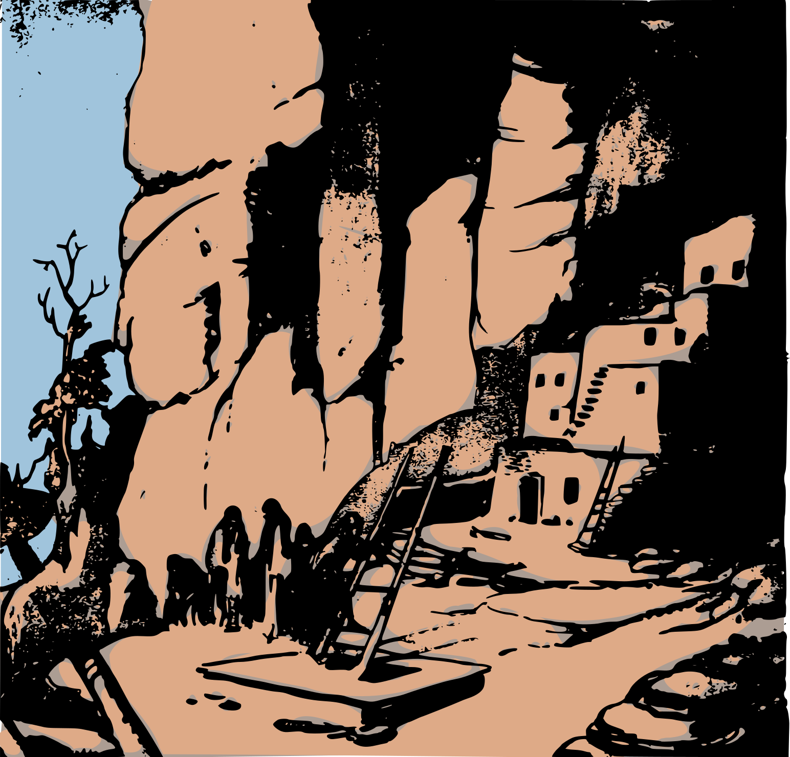 Tags: rock, mountain, cliff, stair, step, housing pueblo