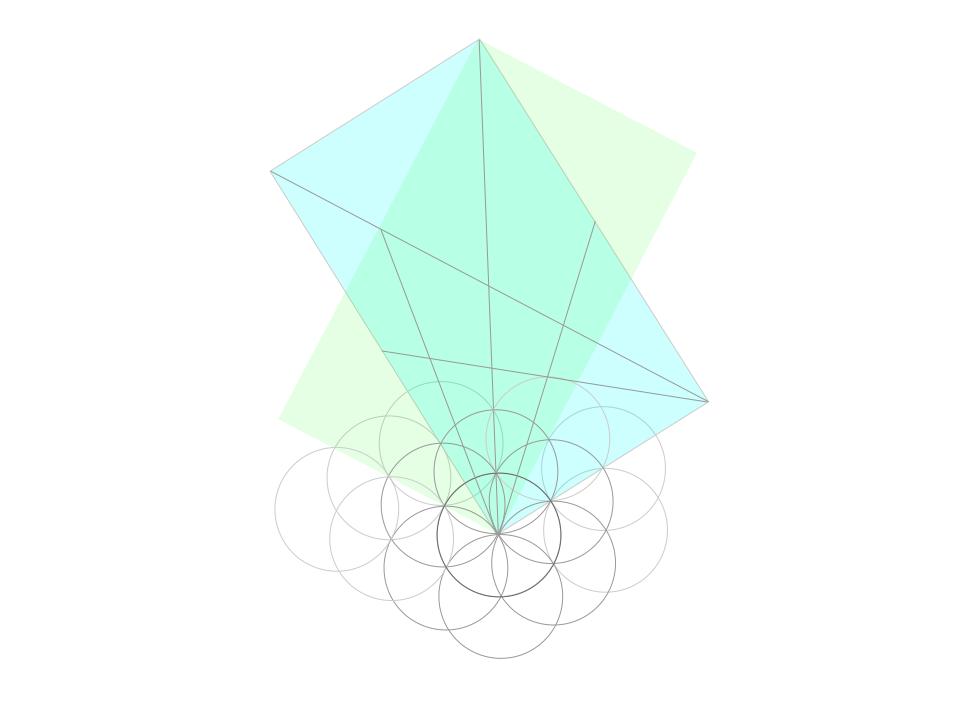 This features a geometric design with multiple circles and triangles. There are three distinct circles in the center of the image, each surrounded by smaller circles. Additionally, there are several triangles surrounding these central circles, creating an intricate pattern. The overall composition gives off a sense of depth and complexity, making it an interesting visual piece.
