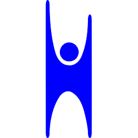 This features a blue and white symbol, which appears to be an abstract representation of a person. It is a unique design that stands out against the background. The symbol has a distinctive shape with a large circle in the center, surrounded by smaller circles. This intriguing design could potentially represent a concept or idea related to human connection or unity.