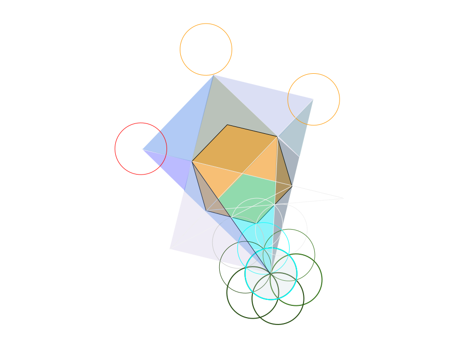 This features a geometric shape, possibly a cube or a pyramid, with multiple circles surrounding it. These circles are of varying sizes and colors, creating an interesting visual effect. The overall composition of the image is quite intriguing, as the shapes interact with each other in a unique way. The color palette used for this artwork adds to its appeal, making it an eye-catching piece that can be appreciated by viewers.