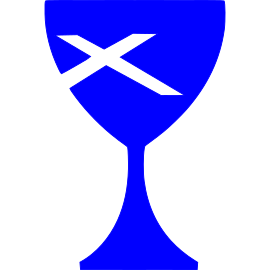 This features a blue and white shield with a cross on it. The shield is shaped like a cup, giving the impression of a blue glass or a blue vase. The cross design adds an element of religious symbolism to the overall appearance of the shield. This unique combination of colors and shapes creates a visually striking image that stands out against its white background.
