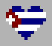 This features a heart-shaped design made out of pixels, with the colors red, white, and blue. The heart is shaped like a flag, resembling the Cuban flag. The background of the image is gray in color, providing a contrasting backdrop for the vibrant heart design. This creative representation of the Cuban flag showcases its iconic colors and shape in an innovative way.