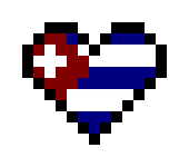 This features a heart-shaped design with the Cuban flag placed in it. The heart is made up of pixels, giving it an interesting and unique appearance. The colors of the flag are red, white, blue, and black, which are also visible in the heart's design. This creative representation of the flag adds a touch of artistic flair to the image.