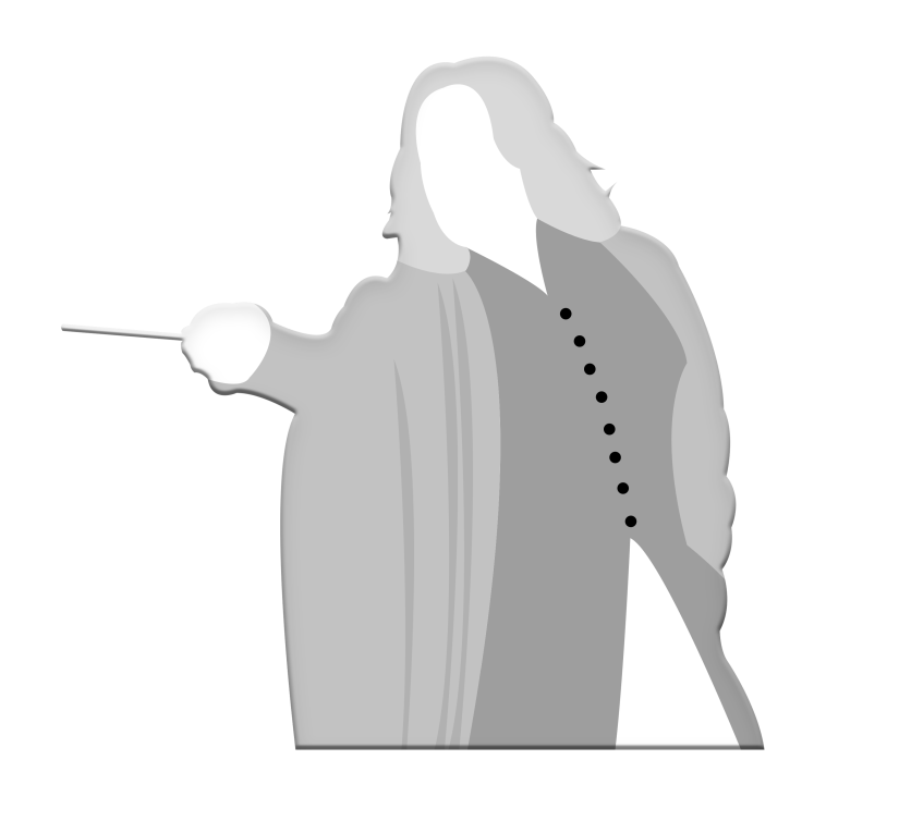 This features a silhouette of a person, possibly a wizard or magician, holding a wand and pointing it towards the left. This figure appears to be dressed in a long coat, giving it an air of mystery and intrigue. The silhouette is set against a white background, which further emphasizes its shape and form. It's possible that this could be a representation of a character from a popular book or movie series, such as Harry Potter, given the wizard-like attire and wand.