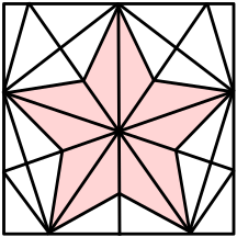 This features a large, intricate pink star design with a black outline. The star is composed of multiple smaller stars arranged in various positions and angles, creating an interesting visual effect. The overall appearance of the star resembles a diamond shape, giving it a unique and captivating look. This artistic piece could be used as a decorative element or even as part of a puzzle picture with ten pieces to assemble.