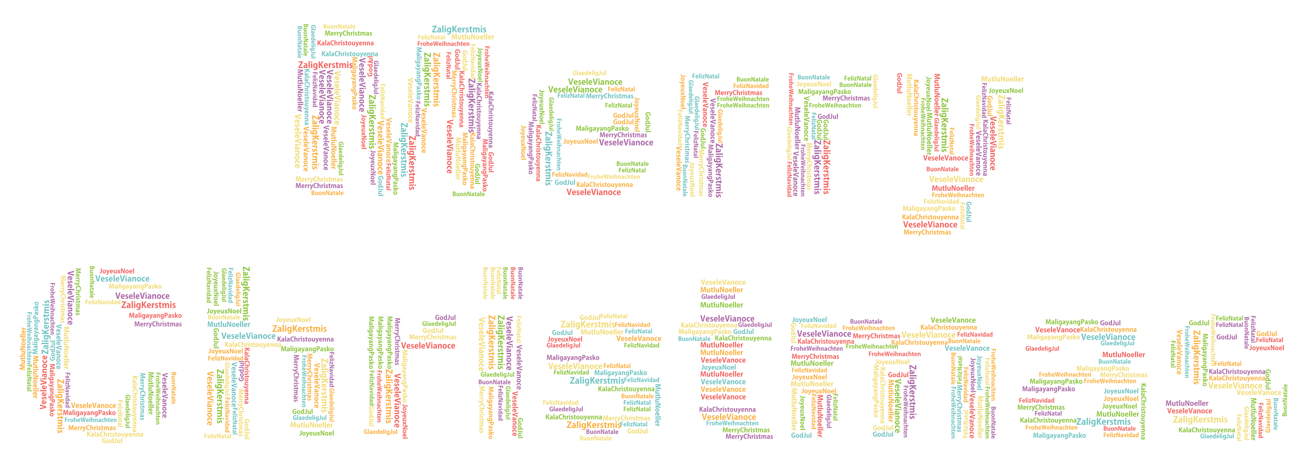 This features a festive Merry Christmas sign with the words "Merry Christmas" written in various colors. The sign is made up of smaller words that are arranged to spell out the main message, creating an eye-catching and cheerful display. The colorful arrangement of letters adds a sense of warmth and joy to the scene, making it an ideal decoration for the holiday season.