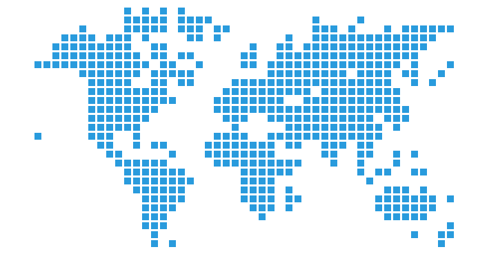 This features a blue map of the world, with each continent represented by small blue squares. The map is quite detailed and covers most of the globe, including both land masses and water bodies. The blue color of the map gives it a unique and visually appealing appearance. Overall, this image showcases an interesting and creative way to represent the world through pixelated continents.