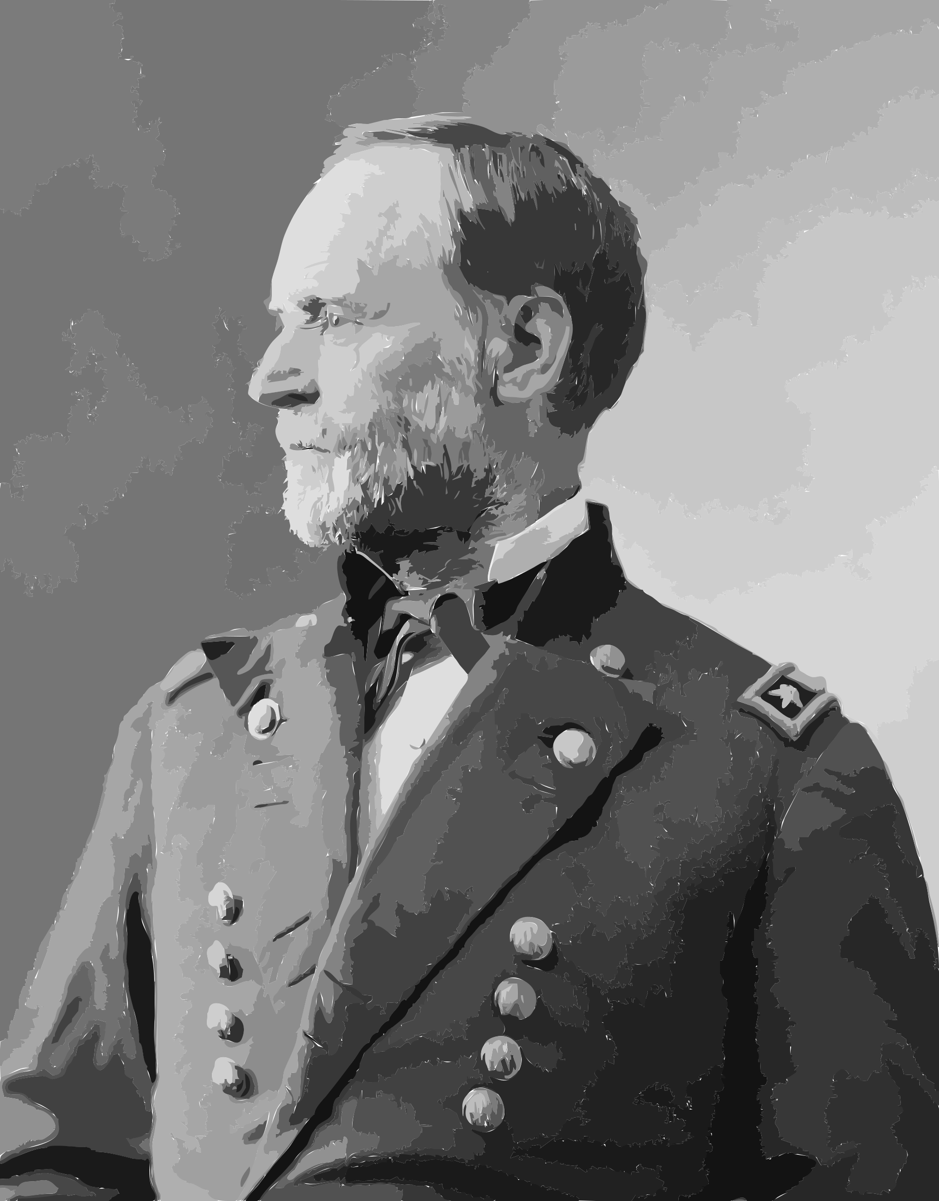 This features a man dressed in military attire, wearing a uniform with a black coat and gold buttons. He is standing confidently, looking directly at the camera. His outfit includes a tie that is neatly placed around his neck. The man appears to be an older gentleman, possibly a general or a high-ranking officer. The photo has a vintage feel to it, suggesting that it was taken some time ago. Overall, the image captures the essence of military authority and discipline.