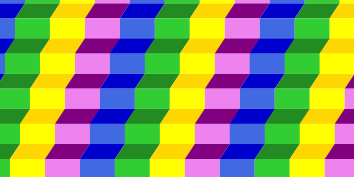 This features a colorful pattern of squares, each with different colors. These squares are arranged in rows and create an eye-catching design. The colors used in the pattern include blue, yellow, pink, green, purple, and orange. The combination of these vibrant hues creates a lively atmosphere that is both visually appealing and inviting. This colorful pattern could be found on various surfaces such as flooring or wallpaper, adding a touch of personality and warmth to any space it adorns.