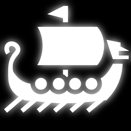 This features a white and black icon of an old Viking boat. The boat is prominently displayed in the center of the image, with its distinctive shape and design clearly visible. The boat's hull is painted in white, while the rest of the boat appears to be black. This iconic symbol represents the maritime heritage and history associated with the Viking era.