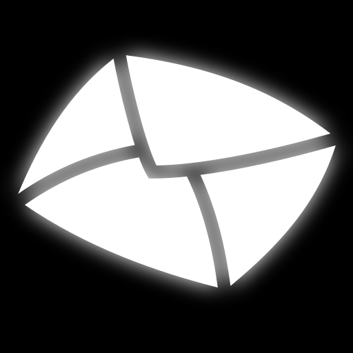 This features a white envelope with an open flap, sitting on top of a black background. The envelope is the main focus of the picture and appears to be slightly illuminated, giving it a glowing effect. This creates a contrast between the envelope's shape and the dark background, making it stand out in the image.