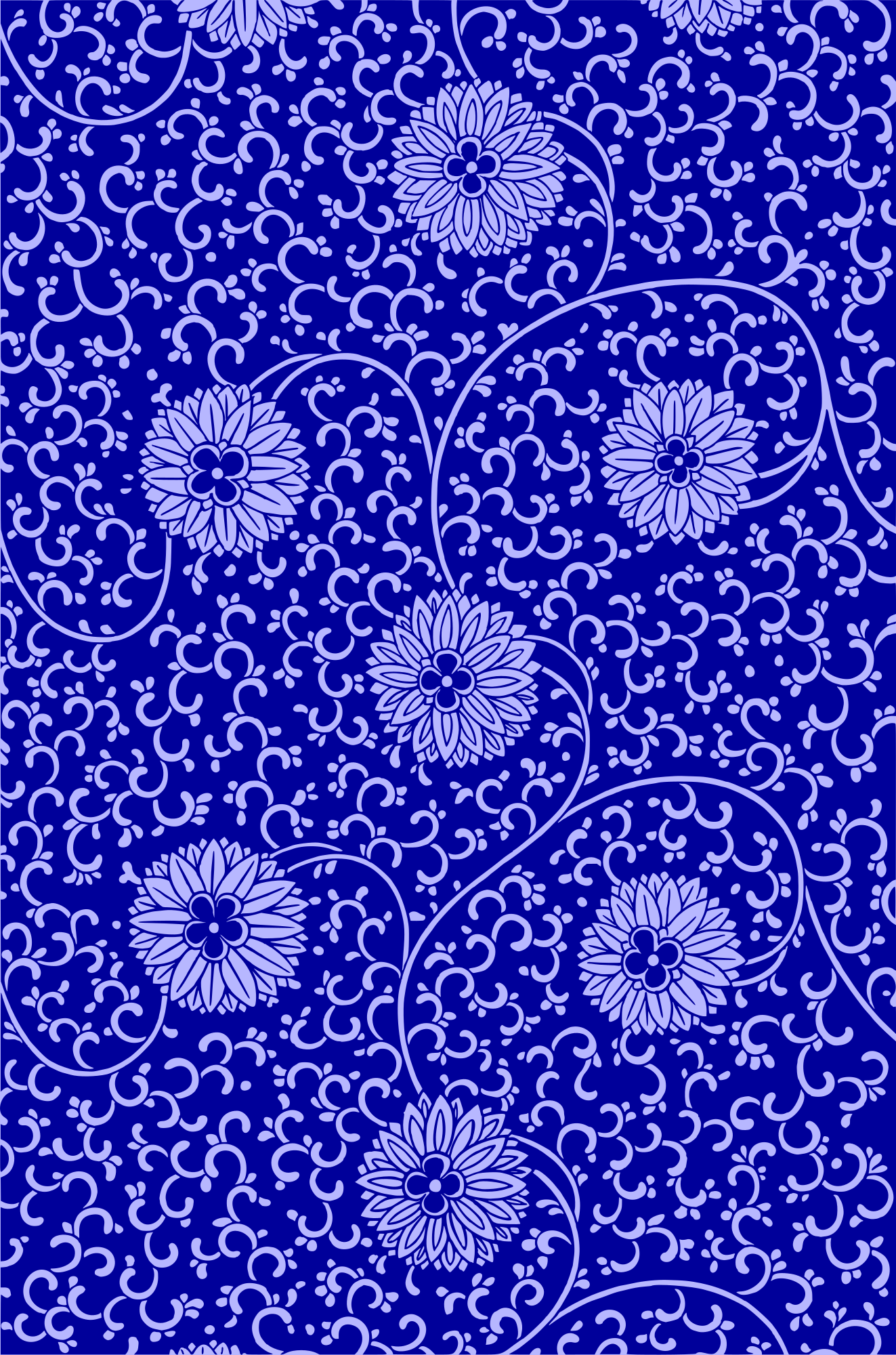 This features a blue and white flowery patterned fabric with various flower designs. There are several small flowers scattered throughout the fabric, each varying in size and position. Some of these flowers are located towards the top left corner, while others can be found closer to the center or bottom right area of the fabric. Overall, the design creates a visually appealing and intricate pattern that showcases the beauty of nature.