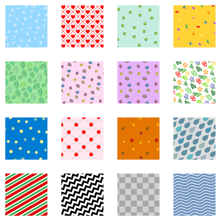 Tags: autumn, butterfly, checkerboard, chevron, christmas, drop, easter, egg, fall, flower, hawaii, heart, heat, hibiscus, leaf, leaves, love, ocean, pattern, rain, raindrop, sea, seamless, snow, snowflake, spring, summer, sun, sunny, tileable, tiling, transparency, waves, winter, xmas