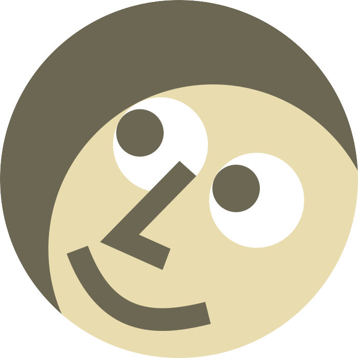 This features a round, brown circle with a smiling face drawn on it. The face has two eyes and a nose, giving the impression of a happy expression. The overall design is simple yet charming, making it an appealing visual element.