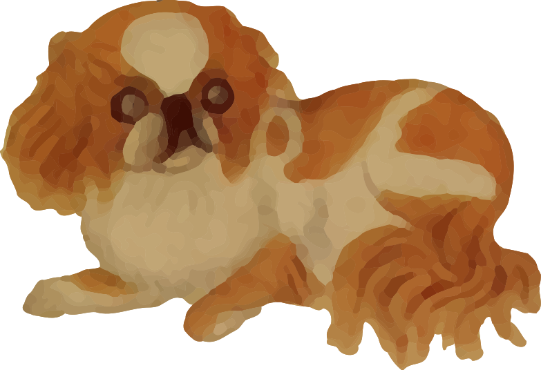 This features a small, cute dog lying on the ground. It appears to be a stuffed animal or a drawing of a dog. The dog is positioned in such a way that it seems to be looking at something off-camera. Its body occupies most of the frame, and its head is located towards the left side of the image. The overall scene gives an impression of a cozy and comfortable environment where the dog is resting or playing.
