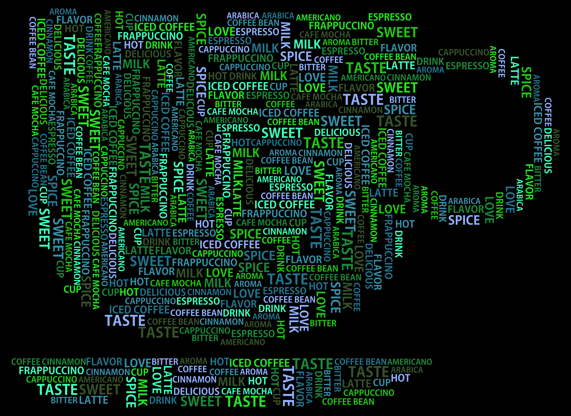 Tags: beverage, chromatic, coffee, colorful, cup, drink, hot, prismatic, rainbow, refreshment, steam, tag cloud, text, type, typography, word cloud, word, milk, sweet, spice, taste, cold, love, deliciou, flavorful, aromatic, nutritiou, energy, warmth, comfort, relaxation, enjoyment, conversation, socializing, caffeine, antioxidant, vitamin, mineral