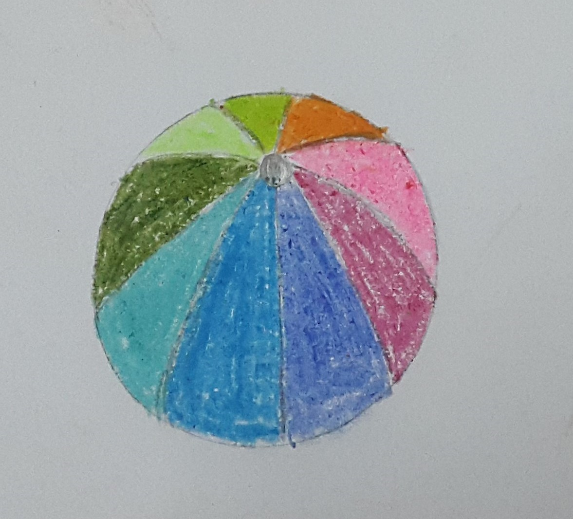 This features a hand-drawn, colorful circle with various colors on it. It appears to be a pie chart or a similar type of graphic representation, possibly used for illustrating different aspects of something. The circle is placed in the center of the image and takes up most of the frame. The colors are vibrant and well-defined, making the drawing stand out against the background.