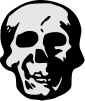 This features a skull with a smiling mouth, giving it an eerie yet friendly appearance. The skull is black and white in color, which adds to its contrasting nature. It appears to be a stylized or cartoon-like representation of the human head, possibly used as a logo or symbol for a brand or organization. The skull's facial expression suggests that it might be associated with humor or playfulness, despite its ominous appearance.