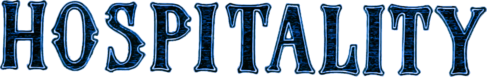 This is a large sign that reads "Hospitality" in blue and white letters. The word hospitality is written across the top of the sign, while the rest of the text is arranged in rows below it. This sign likely serves as an advertisement or decoration for a business related to hospitality, such as a hotel or restaurant.