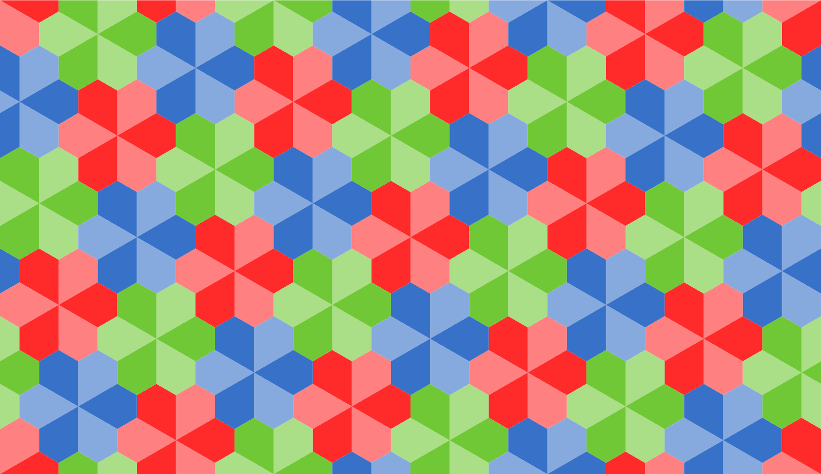 This features a colorful and intricate pattern of geometric shapes, resembling a mosaic or tessellation. These shapes are arranged in various sizes and colors, creating an eye-catching and vibrant design. The pattern is composed of multiple hexagons, which are interconnected to form the larger structure. The hexagons come in different shades, such as red, blue, green, yellow, and white, adding a sense of depth and variety to the overall composition. This visually appealing pattern can be used for various purposes, including wallpaper designs or decorative elements in interior spaces.