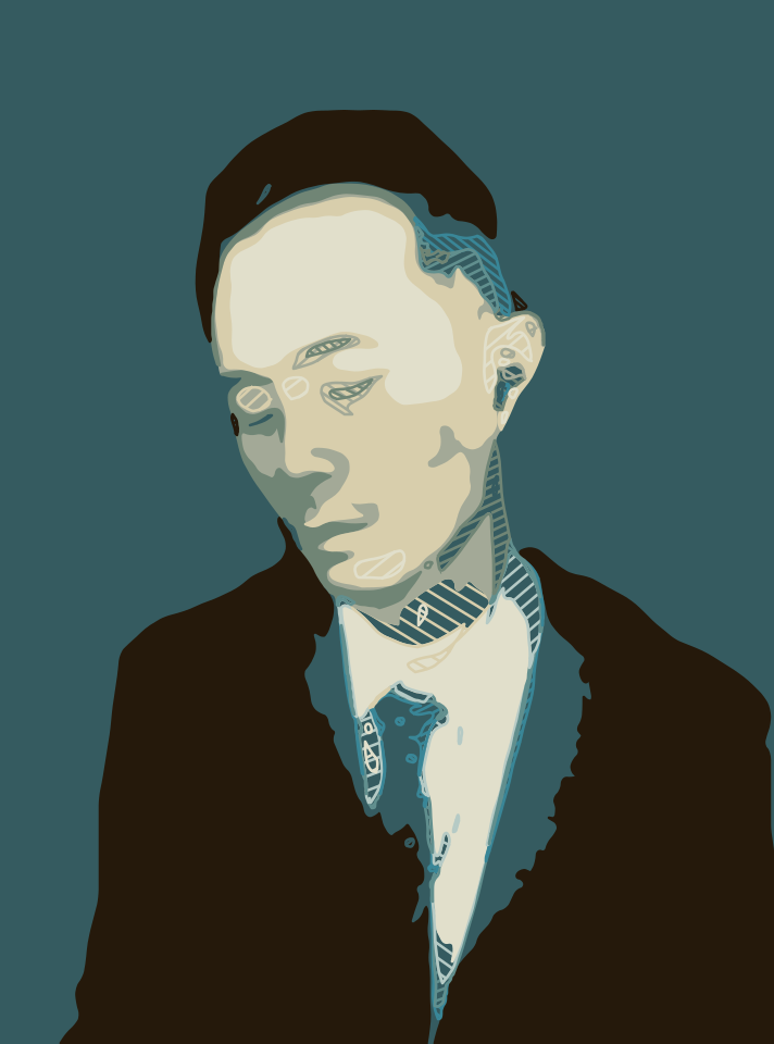 This is a black and white photo of a man wearing a suit. He has his eyes closed, giving the impression that he might be sleeping or daydreaming. The man's attire includes a tie, which adds to the formality of his appearance. The overall atmosphere of the photograph seems somewhat mysterious, as if the man is lost in thought or contemplating something important.