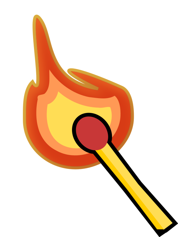 This features a yellow and red lit match with its handle pointing upwards. The flame of the match is brightly colored, displaying both red and yellow hues. The top part of the match is painted in red, while the rest of it has a yellow tint. This creative representation of a match can be used for various purposes such as artwork or educational materials to convey the concept of fire and ignition.