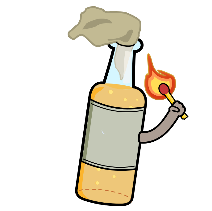 This features a bottle with a cloth in it, and the bottle is holding a lit match. This creates an interesting visual effect as if the bottle is lighting itself on fire. The bottle appears to be full, adding to the dramatic nature of the scene. The combination of the lit match and the cloth inside the bottle gives the impression that it could potentially be a Molotov cocktail, which is an improvised incendiary device often used as a weapon or for self-defense purposes.