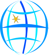 This features a blue and white globe with a yellow star in the center. The star is located towards the top of the globe, making it stand out against the background. The globe appears to be a symbol or logo, possibly representing a specific organization or concept related to the world. The combination of colors and the prominent star make this image visually appealing and easily recognizable.