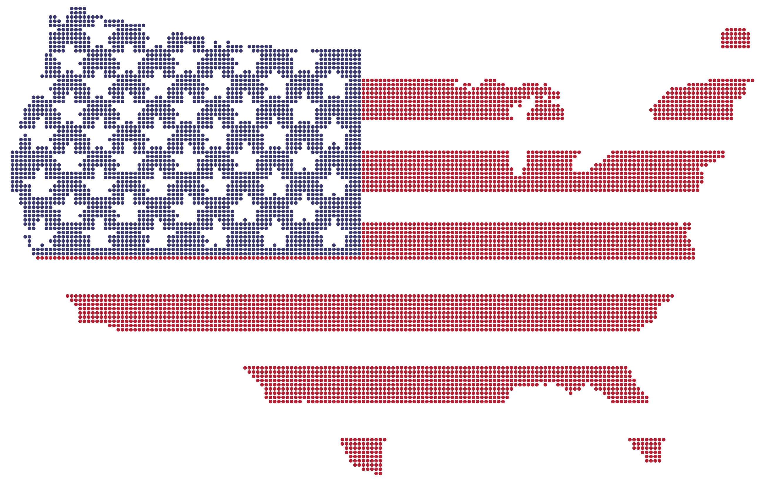 This features a unique and creative representation of the United States map, made up entirely of small red, white, and blue dots. These dots are arranged in such a way that they resemble the familiar outline of the country, with each state represented by its distinct shape. This artistic display showcases the artist's skill in transforming an ordinary object into something visually captivating and thought-provoking. The image evokes feelings of patriotism and pride for the nation while also demonstrating a remarkable level of detail and craftsmanship.