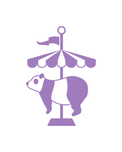 This features a purple and white panda bear standing on top of a carousel. The carousel is shaped like a teddy bear, adding to the playful nature of the scene. The panda appears to be enjoying its time on this unique ride, as it stands confidently in front of the carousel. This creative illustration showcases both the panda and the carousel in an appealing manner, making for a delightful visual experience.